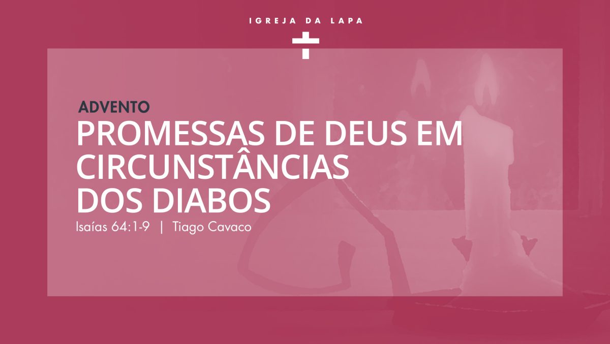 Este sermão, pregado pelo Pr. Tiago Cavaco, chama-se “Promessas de Deus em circunstâncias dos diabos”. Custa-nos viver num mundo em que parece que Deus não anda a cumprir o seu papel, provando que tem mão nos acontecimentos. Mas celebrar o Advento, o tempo que antecede o Natal, recorda-nos que Jesus é Deus a cumprir o que nos disse, ao ponto em que uma promessa se torna uma pessoa.