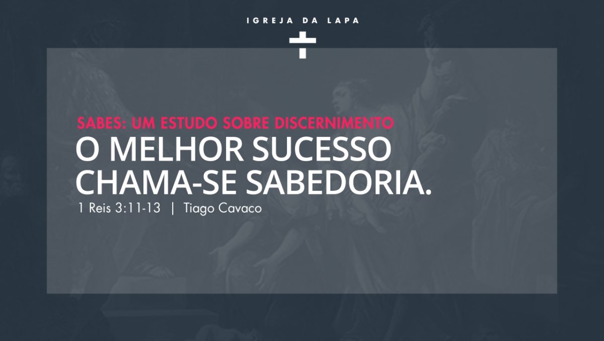 Este sermão, pregado pelo Pr. Tiago Cavaco em 1 Reis 3:11-13, chama-se “O melhor sucesso chama-se sabedoria”. A prova que não somos assim tão sábios é que vivemos mais obcecados do que gostaríamos de admitir por termos uma vida longa, dinheiro e sucesso sobre os outros. Enquanto Cristo não for quem nos salva, teremos pouca liberdade do peso imenso de vivermos para estas glórias tão passageiras.